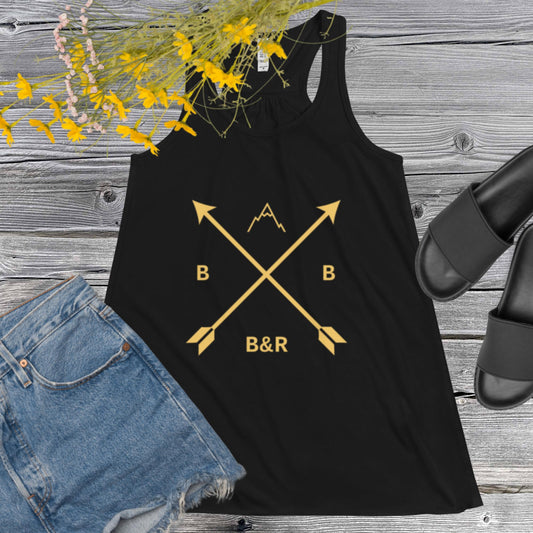 Women's B&R Flowy Racerback Tank (black with gold logo)